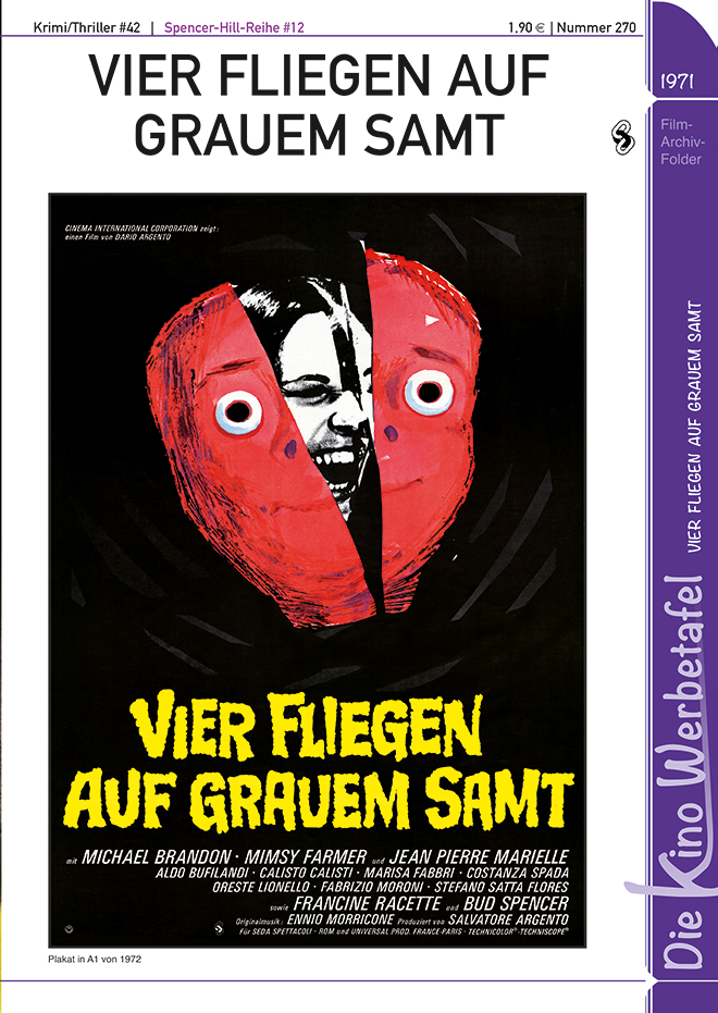 Gerade Fans von Filmklassikern erfreuen sich an Zusatzinformationen zu ihren Lieblingsfilmen, und damit ist nicht nur Text gemeint, denn Filme sind ja vor allem ein visuelles Medium. Was war das Kino-Plakatmotiv? Welche Aushangfotos gab es? Die liebevoll gemachte Reihe DIE KINO-WERBETAFEL im Stil alter Filmprogramme beantwortet das auf eine Weise, die (Sammel-)Spaß macht! Vorne ist immer das Plakatmotiv zu sehen, danach gibt es Informationen wie Stabangaben sowie einen Überblick über die Aushangfotos, natürlich jeweils mit kleiner Abbildung. Ein Farbstreifen am Rand ordnet die Filme übersichtlich einem bestimmten Genre zu. Ob Bud Spencer oder Adriano Celentano, ob RAMBO oder STAR WARS, ob Horrorfilm oder Erotikstreifen – das Angebot ist extrem vielfältig und wird ständig um neue Titel ergänzt. Schwerpunkt sind bislang die Sechziger-, Siebziger- und Achtzigerjahre, aber die Möglichkeiten sind in alle Richtungen offen, denn das Programm kann noch um Tausende von Filmen erweitert werden. Monat für Monat wird es umfangreicher und wächst sich mit jeder WERBETAFEL immer mehr zu einem reichlich bebilderten Kino-Lexikon aus, in dem man immer wieder gerne blättert, um sich an schönen Erinnerungen zu ergötzen oder nach neuen interessanten Filmen zu suchen. Ergänzt wird DIE KINO-WERBETAFEL noch durch DIE STAR WERBETAFEL, die einem Schauspieler gewidmet ist, von Action-Stars wie Jean-Claude van Damme bis zu Erotik-Göttinnen wie Ajita Wilson. Da braucht man nicht lange zu überlegen, ob man zuschlagen soll, denn hier ist für jeden etwas dabei. Entweder man stellt sich einfach seine Lieblingsfilme zusammen, oder man sammelt gleich alle. Denn die vierseitigen WERBETAFELN im Format DIN A4 sind immer ein Augenschmaus. Natürlich sind die KINO- und die STAR-WERBETAFEL auch im Abonnement erhältlich – für alle, die von dieser einzigartigen Reihe, die laufend erweitert wird, nichts verpassen möchten!